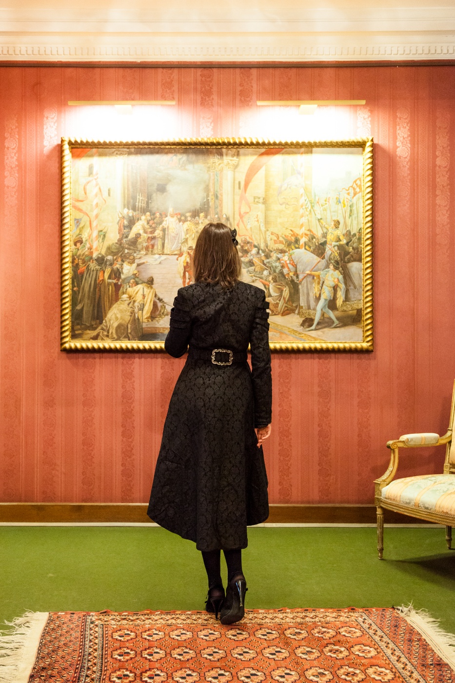 As you can see from the photos above and below, the cravat is detachable. The materials are very pleasant to touch, the sizes noted on their sites are true and the details are out-of-this-world! From lace that covers every button, to the metal buckles in the front and the big one in the back, to the corset-like back and the fine work around it, the black pearls that are joint with metal chains… the design of both pieces left me in awe! For the details you cannot see in these photos, take a look at my page eleanoredystopia/ or my IG www.instagram.com/eleanoredystopia/.