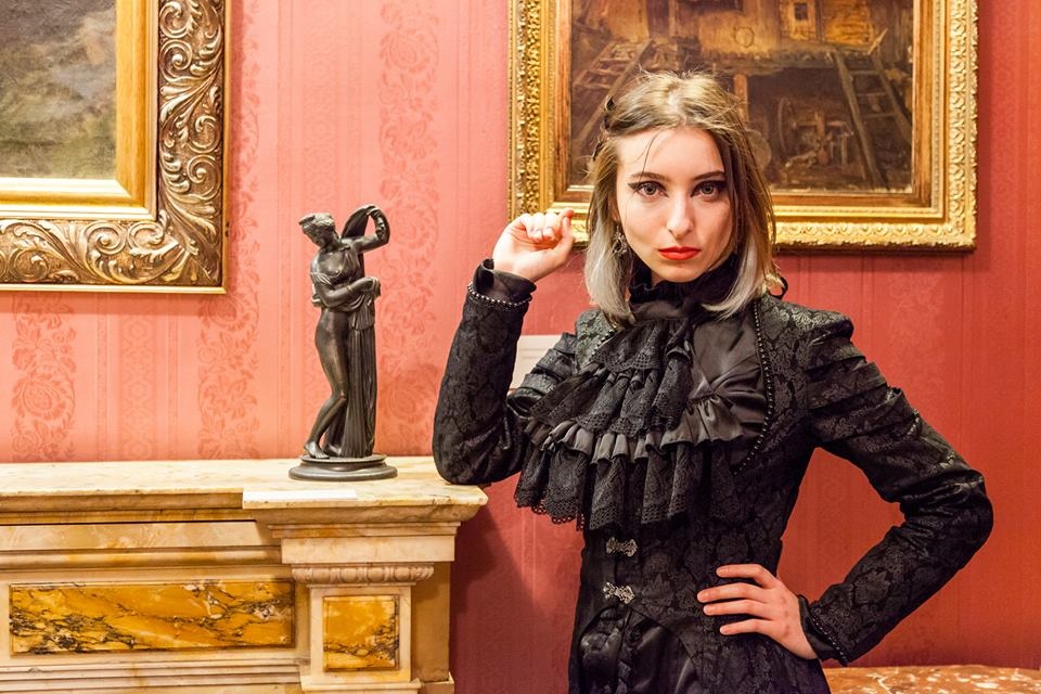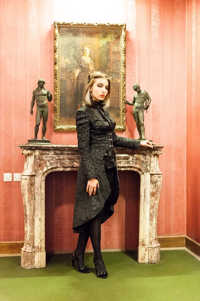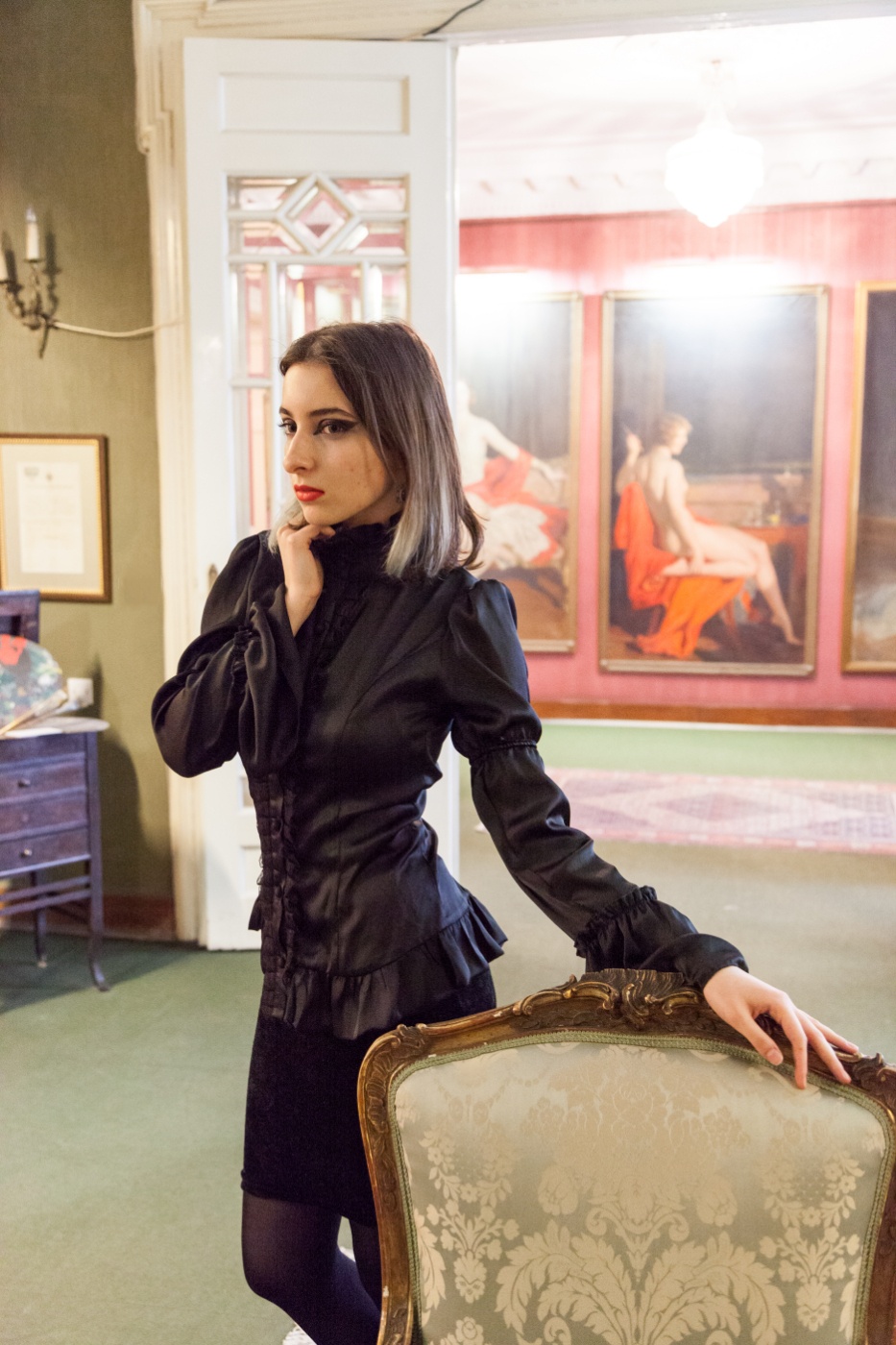 Another reason for loving this photo shoot is because the outfit is in a vampiric style. My love for vampires started before my permanent teeth started to grow. So, when the permanent ones began to grow, one of my canines was way longer than the rest of the teeth, so my close friends from school started calling me Vampire, which I adored! Later I got that tooth taken care of, so my teeth would be as you know them today.